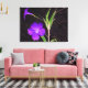 La imagen dramática de esta tela impresa es una fotografía original de ZoeSPEAK de petunias mexicanas. Las plantas crecen en grupos. Las flores son conocidas por sus bonitos tonos morados. Las flores crecen sobre tallos finos que salen de hojas verdes largas y estrechas. El fondo oscuro marca los colores.