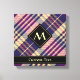 Diseño morado, amarillo dorado y azul tartán. Patrón sin foco. texto personalizado y monograma.