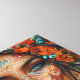 Cada detalhe da arte conta uma história: o olhar penetrante, cheio de sabedoria ancestral; as penas delicadamente posicionadas, simbolizando liberdade e conexão com o espiritual; e o fundo vibrante, que evoca a vida pulsante das florestas.