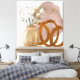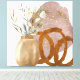 This modern abstract botanical artwork blends organic shapes, soft watercolor textures, and warm neutral hues into a calming, elegant composition. A sculptural ceramic vase anchors the piece, while layered foliage and subtle gold accents create depth, movement, and quiet visual interest.