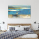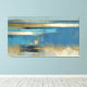 Layered bands of cerulean, sand, and muted gold stretch across the surface like a distant shoreline held in suspension. Soft transitions and textured edges evoke water, sky, and light without fixing them in place, allowing the eye to drift calmly from horizon to horizon. Subtle metallic accents catch and release light, giving the composition a quiet luminosity that shifts with the room. This canvas print brings a sense of balance and contemplative stillness, well suited to spaces meant for reflection, rest, or focused calm.