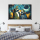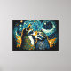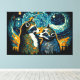 Adorable pareja de mapaches mirando la puesta de sol bajo un cielo estrellado en el estilo de Vincent van Gogh Perfecto para diseños románticos, arte en las paredes y decoración doméstica.ilustracion