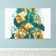Rama con joyas, oro y hojas verdes de Ginko biloba en luz, fondo verde pintado. Ginko biloba