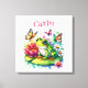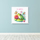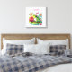Arte de pared personalizado para cuarto de niños. Encantador arte de rana o sapo estilo acuarela caprichoso sentado en una hoja de nenúfar rodeado de flores y mariposas.