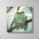 Un lienzo envuelto con una fotografía de una linda rana verde chillando en una rama de árbol. Me encanta la forma en que posa para la foto.