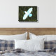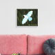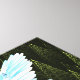 Una silueta blanca de un cuervo (Corvus corax) en vuelo superpuesta sobre un fondo fractal de tono verde que se parece mucho a un bosque de coníferas. Añade tu propio texto.