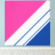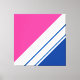 Este diseño deportivo cuenta con tres bandas de carreras en diagonal blanca en contra de un fondo rosa brillante y azul profundo.