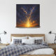 Una explosión dinámica de grietas luminosas en un cielo celeste, con corrientes radiantes de luz que fluyen a través de las fracturas. La idea evoca revelaciones divinas que atraviesan la percepción humana, una metáfora perfecta para la transformación.