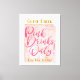 Recibo de cheque de invitado sólo bebidas rosadas | Rosa y oro femenino precoz | Vivir La Vida En Rosa! | Amante rosa | Poster Decor Dorm