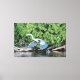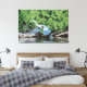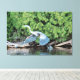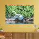 Impresión de arte de tela estirada de garza azul de tamaño moderno y sobredimensionado. Paleta de color gris azul, gris y verde.