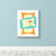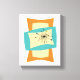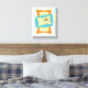 Este funky lienzo envuelto moderno de mediados de siglo presenta formas rectangulares exprimidas y estiradas En azul turquesa, crema y naranja. Los acentos de Starburst en rosa, azul, oro y negro resaltan el diseño. ¡Fab!
