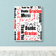 Este lienzo envuelto ofrece rojo y negro Gracias escrito en varios idiomas y una variedad de estilos de fuente sobre blanco. Haga clic en Personalizar para seleccionar un color de fondo distinto del blanco en Editar y fondo. Asegúrese de marcar en Opciones de encuadernación (Framing Options) donde puede seleccionar entre otros dos espesores de lienzo, una serie de opciones de panel y efectos sepia o negro y blanco. Podría hacer un gran regalo para el calentamiento de la casa.