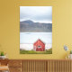 Foto de viaje de una tradicional cabaña roja noruega en la playa de Ramberg, Islas Lofoten. Foto © Sebastian Worm
