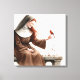 Un cardenal se asienta en el dedo de una monja pelirroja.