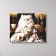 A fluffy Persian cat, wearing an ornate gown and jewelry, sits regally holding a teacup.
