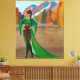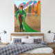 El arte original de una mujer negra regia vestida con un vestido verde de moda, pesas de cuero y botas se alza en un balcón del castillo tomando el aire de la caída y disfrutando de las hermosas hojas de otoño. Perfecto para la decoración otoñal y de Acción de Gracias. Perfecto para un amante de la moda.
