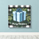 Haz que tus paredes sean festivas esta temporada con una impresión de tela de Navidad de Navidades de Buffalo Plata Regalo. El diseño de la impresión de lienzo incluye un regalo de Navidades envueltos adornado con vegetación de vacaciones en un fondo de gingham. También hay artículos de regalo y de vacaciones disponibles con este diseño.