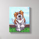 Desfile Animal Cute Impresión de tela de perro de St. Bernard creada por Imagine That! El diseño presenta a nuestro encantador personaje de perro blanco y bronceado parado en un patio de césped con una valla de ladrillo rojo, un cielo azul texturado y una divertida frontera violeta pintada por Traci Van Wagoner, un talentoso artista de libros para niños. El cachorro divertido se pone en juego con una pata levantada. Este divertido arte mascota es perfecto para los amantes de los perros de St. Bernard y para los amantes del arte animal de todas las edades. En muchos de nuestros extravagantes productos de perrito St. Bernard, encontrarás este adorable cachorro que viene y va con la cara de un perro de San Bernardo, juguetón, y la cola de un perro gracioso del otro lado. Únete al Desfile de Animales y trae una sonrisa a la cara de alguien que amas con un regalo de nuestro lindo perro de San Bernardo. ¡Vaya!
