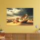 Una visión surrealista de un paisaje desértico alienígena dominado por formas escultóricas doradas y suaves. Curvas orgánicas y texturas metálicas intrincadas emergen de dunas de arena interminables bajo un cielo dramático, evocando un sentido de misterio, silencio y una civilización desconocida. Una obra de arte cinematográfica y futurista ideal para arte de pared moderno, interiores inspirados en la ciencia ficción y decoración de impacto.