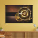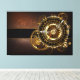 Antiguo, fantásticos relojes con engranajes de oro y latón sobre un fondo marrón y oxidado. Estilo Steampunk.