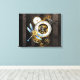 Diales antiguos con artes de oro y latón, decorados con libélula mecánica sobre fondo marrón, rayado. Steampunk.