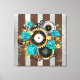 Lienzo Reloj de vapor y Rosas turquesa a rayas