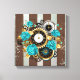 Lienzo Reloj de vapor y Rosas turquesa a rayas