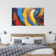Agregue un poderoso toque de color a su sala de estar o oficina con esta impresionante impresión horizontal en lienzo. Con un diseño dinámico de expresionismo abstracto con remolinos fluidos y detalles de pintura al óleo gruesos y texturizados en azul, amarillo y rojo vibrantes. Una pieza impactante de calidad de galería para decoración contemporánea del hogar.