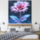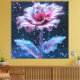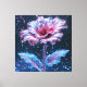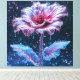 La imagen muestra una representación artística de una flor que parece estar hecha de materiales vibrantes y brillantes. Los pétalos son una mezcla de tonos rosa y púrpura, que brillan con un acabado metálico y están adornados con pequeñas gotas de agua que realzan su delicada apariencia.