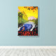 Poster de viaje vintage de Grecia restaurado y mejorado digitalmente. El poster muestra un automóvil conduciendo por un camino de montaña en Grecia. Un monasterio está en el acantilado a la izquierda. Se han eliminado inperfecciones y se han corregido los colores. Imagen cortesía de la Biblioteca del Congreso.