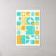 Recorra el tiempo con este diseño abstracto inspirado en la era de mediados de siglo. Cuenta con una serie de cuadrados con estrellas, puntos y formas con una bonita gama de colores. Perfecto para los amantes de la era atómica y el estilo retro.
