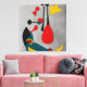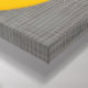Esta barra gráfica abstracta presenta formas rojas, amarillas, negras y azul verdoso sobre un fondo gris.