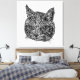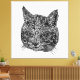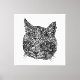 Cabeza ornamental en blanco y negro de un gato, inspirada en un animal de la vida real y dibujada originalmente con lápiz sobre papel.