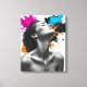 Esta fascinante obra de arte digital combina elegancia intemporal con expresión artística audaz. Una figura femenina en escala de grises inclina su cabeza hacia atrás en un momento de serenidad, su piel suave y monocroma brillando contra un fondo explosivo de pintura vibrante salpicando de rosa, azul, naranja y negro. El contraste dinámico entre calma y energía crea una estética llamativa y moderna, perfecta para los que aprecian el arte contemporáneo, surrealista y expresivo. Puede personalizar del diseño cambiando el tono de los colores, agregando filtros diferentes y eligiendo un fondo de los personalizados o cargando el suyo propio. Puede agregar un marco a la impresión de lienzo cuando compre.