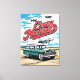 Bold pop-art / graphic style illustration of the dynamic side view of a retro vintage classic station wagon — green body, white roof, chrome accents, roof rack, round headlights, whitewall tires and jet fighters flying overhead in blue sky with clouds. Clean lines, vibrant colors and nostalgic vibe celebrate timeless 1950s family wagon design, road-trip spirit and retro adventure. Perfect classic wagon enthusiast wall art, retro garage decor, man cave poster, vintage vehicle lover statement piece or automotive nostalgia art for bedrooms, garages, offices, game rooms or travel spaces. High-quality print with razor-sharp detail and striking color pop.