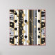 Retro-modern Black, Grey and Gold Polka Dots with black, grey, white and gold stripes canvas print.