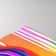 Lienzo en un retrato retro, semi abstracto de una mujer rodeada de cabello largo en colores brillantes, psicodélicos, arcoiris