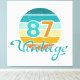 Retro vintage style sunset with 87 (1987) typography center in the style of the 1980s and Vintage in a scripted typographic design below in a distressed effect.