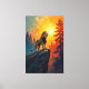 Un majestuoso león bañado por la luz de la luna se erige alto en un acantilado rocoso, exuberante sensación de orgullo, poder y tranquilidad.