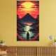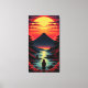 Lienzo Río al atardecer con volcán