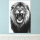 Lienzo Roaring Lion Black White Powerful Wildlife Art
