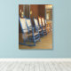Una acogedora hilera de mecedoras, ideal para sentarse en un porche, en una casa de campo en Oak Bluffs, en el viñedo de Martha. La Martha's Vineyard CampMeeting Association (MVCMA), una atracción popular en la isla, alberga cientos de cabañas de jengibre victorianas. Oak Bluffs fue alguna vez conocida como Ciudad de la Cabaña. El Martha's Vineyard se encuentra en Massachusetts, justo al lado de Cape Cod.