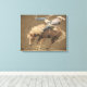 Imagen de alta acción de un conductor de rodeo intentando quedarse en un caballo balancín. Pastel de la galardonada artista Kathie Miller.