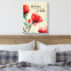 El arte de los lienzos de escritura inspiradora cristiana representa un hermoso diseño de un jardín de acuarela floral con flores rojas y rosas y vegetación. Presenta una Biblia motivadora Verse Romans 5:5, "El amor de Dios se ha vertido en nuestros corazones".
