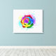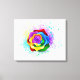 Rosa grande y floreciente con pétalos de arco iris sobre fondo blanco, pintado con salpicaduras de pintura colorida y brillante. 3.ª