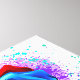 Rosa grande y floreciente con pétalos de arco iris sobre fondo blanco, pintado con salpicaduras de pintura colorida y brillante. 3.ª
