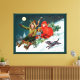 Una encantadora estampada vintage de lona navideña con dos niños con juguetes y abetos en trineos. Una escena del libro "Navidades Joys para Chicas y niños". Pintada por la ilustradora británica de libros Rosa Clementina Petherick.
