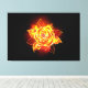 Rosa en llamas del fuego y la llama sobre fondo negro.