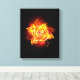 Rosa en llamas del fuego y la llama sobre fondo negro.
