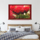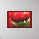 Lienzo Rosa roja con hojas fondo rojo oscuro premium